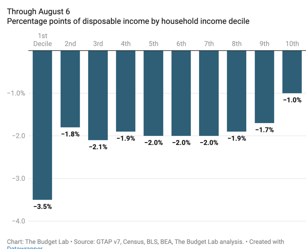 1) The 1st chart shows the loss in disposable income in hard dollars — the money you have available to spend — based on the increased cost of the goods because of tariffs.